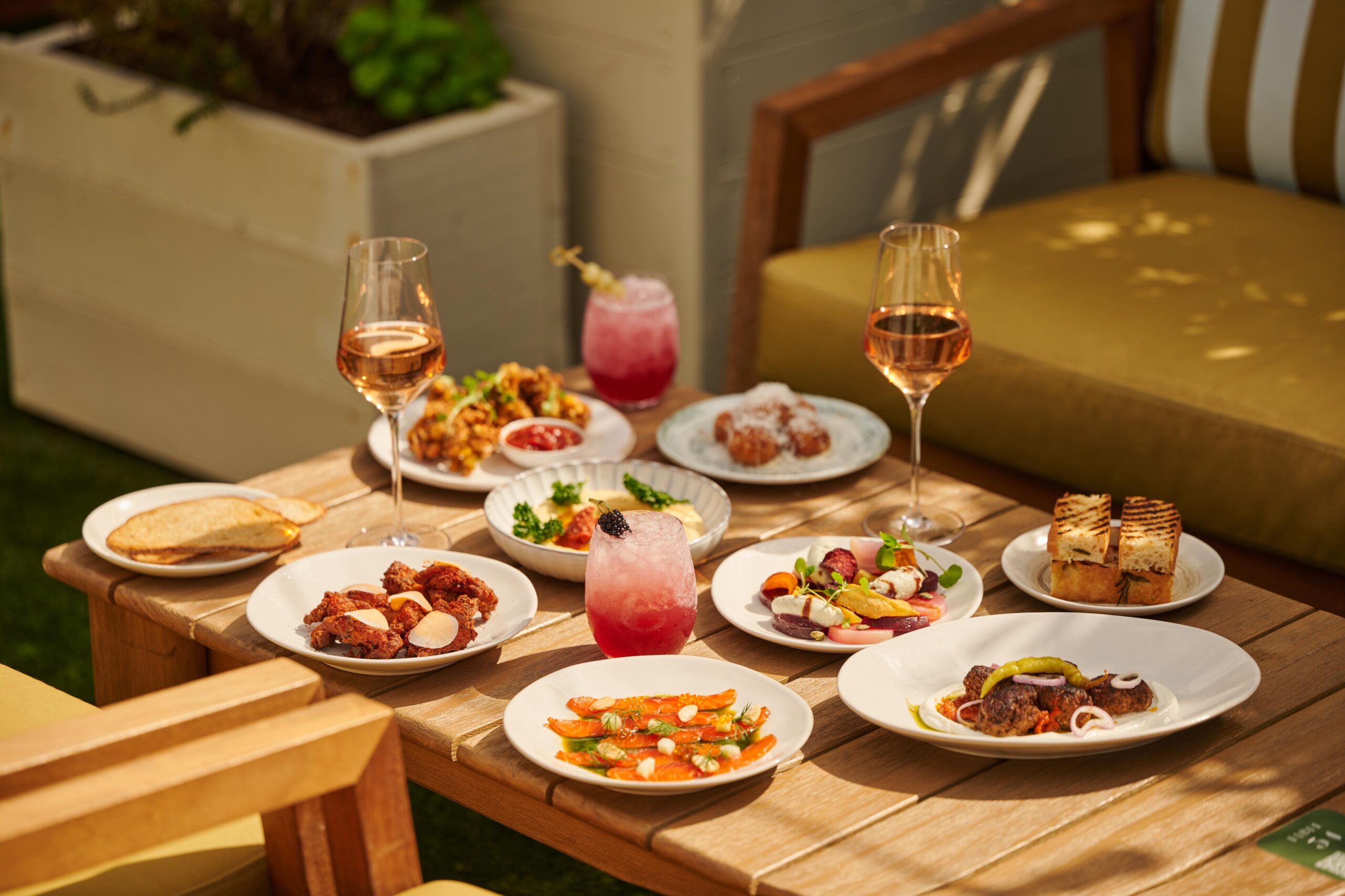 Step into the chic, greenhouse-style private booths or bask on the outdoor terrace, surrounded by lush wildflowers that inspire the delightful cocktail menu. The kitchen offers a vibrant, seasonal, light bites menu, perfect for sharing, so whether you’re soaking up the sun by day or marvelling at the twinkling skyline by night, we have something for everyone.