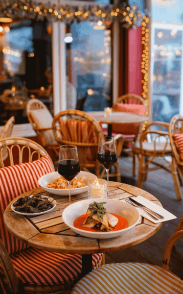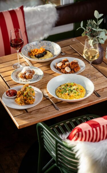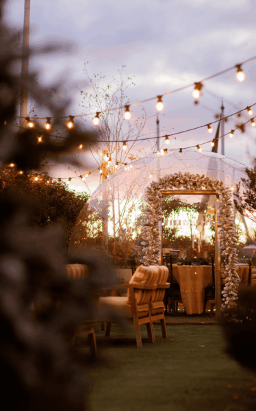 Step into the chic, greenhouse-style private booths, bask on the outdoor terrace, or cosy up in one of our winter igloos, the perfect festive retreat. Surrounded by lush wildflowers that inspire the delightful cocktail menu, our kitchen offers a vibrant, seasonal, and light bites menu perfect for sharing. Whether you’re soaking up the winter sun by day or marvelling at the twinkling skyline by night, we have something for everyone.