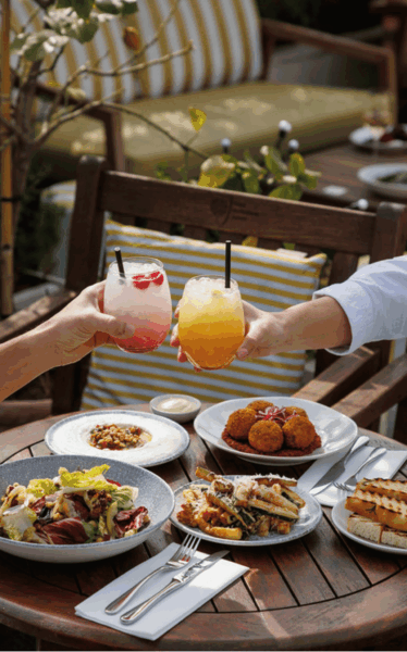 Step into the chic, greenhouse-style private booths or bask on the outdoor terrace. Surrounded by lush wildflowers that inspire the delightful cocktail menu, our kitchen offers a vibrant, seasonal, and light bites menu perfect for sharing. Whether you’re soaking up the winter sun by day or marvelling at the twinkling skyline by night, we have something for everyone.